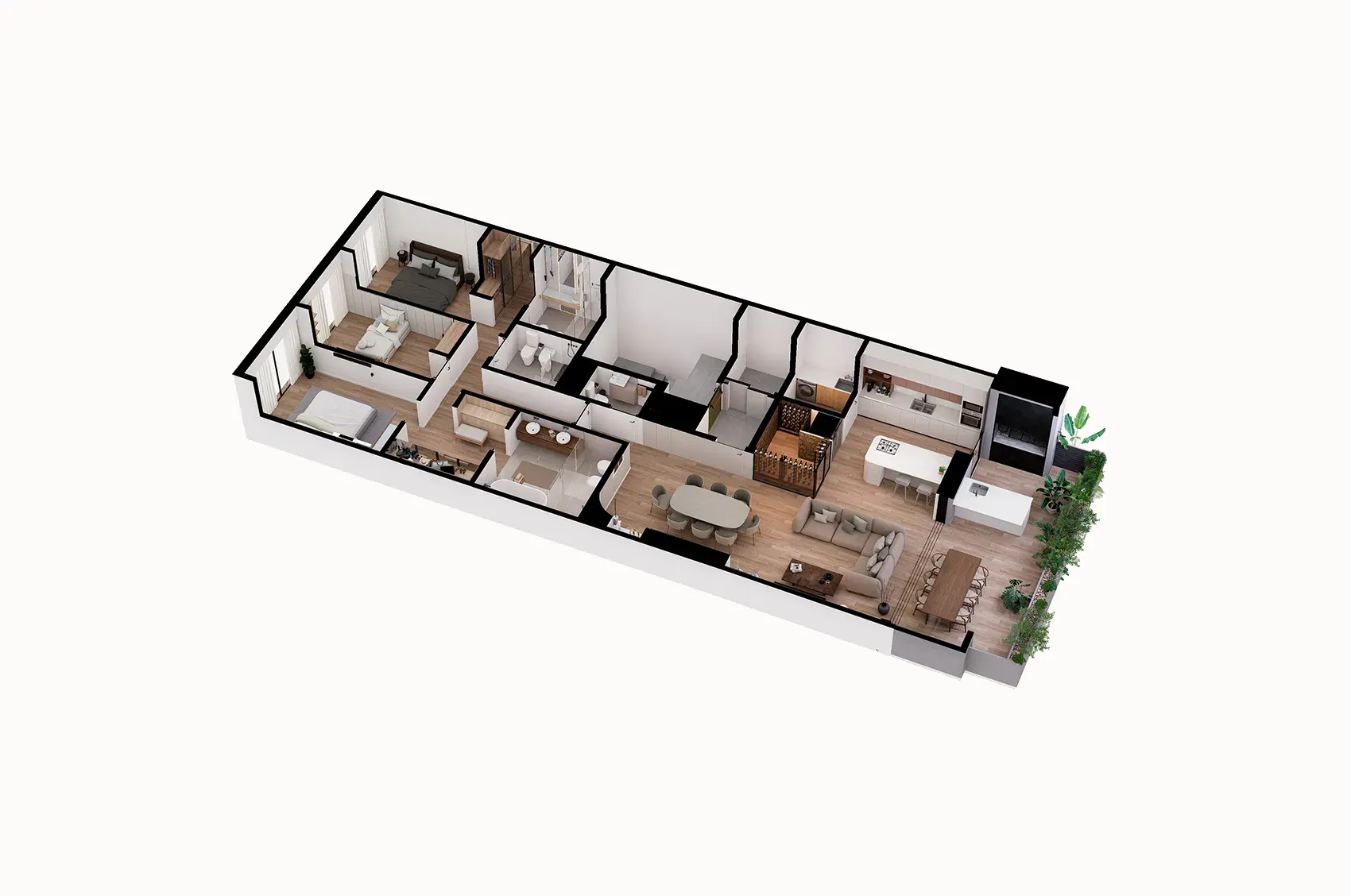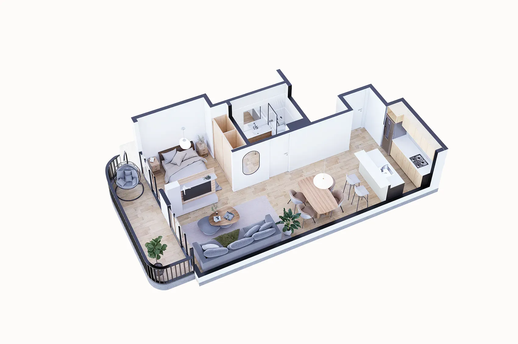 El diseño busca crear un espacio acogedor, funcional y estéticamente atractivo, adaptado a las necesidades y gustos del usuario. Se han seleccionado materiales, colores y mobiliario que favorezcan la armonía y el confort. La paleta cromática incluye tonos neutros con acentos en colores cálidos, lo que aporta una sensación de amplitud y tranquilidad.
