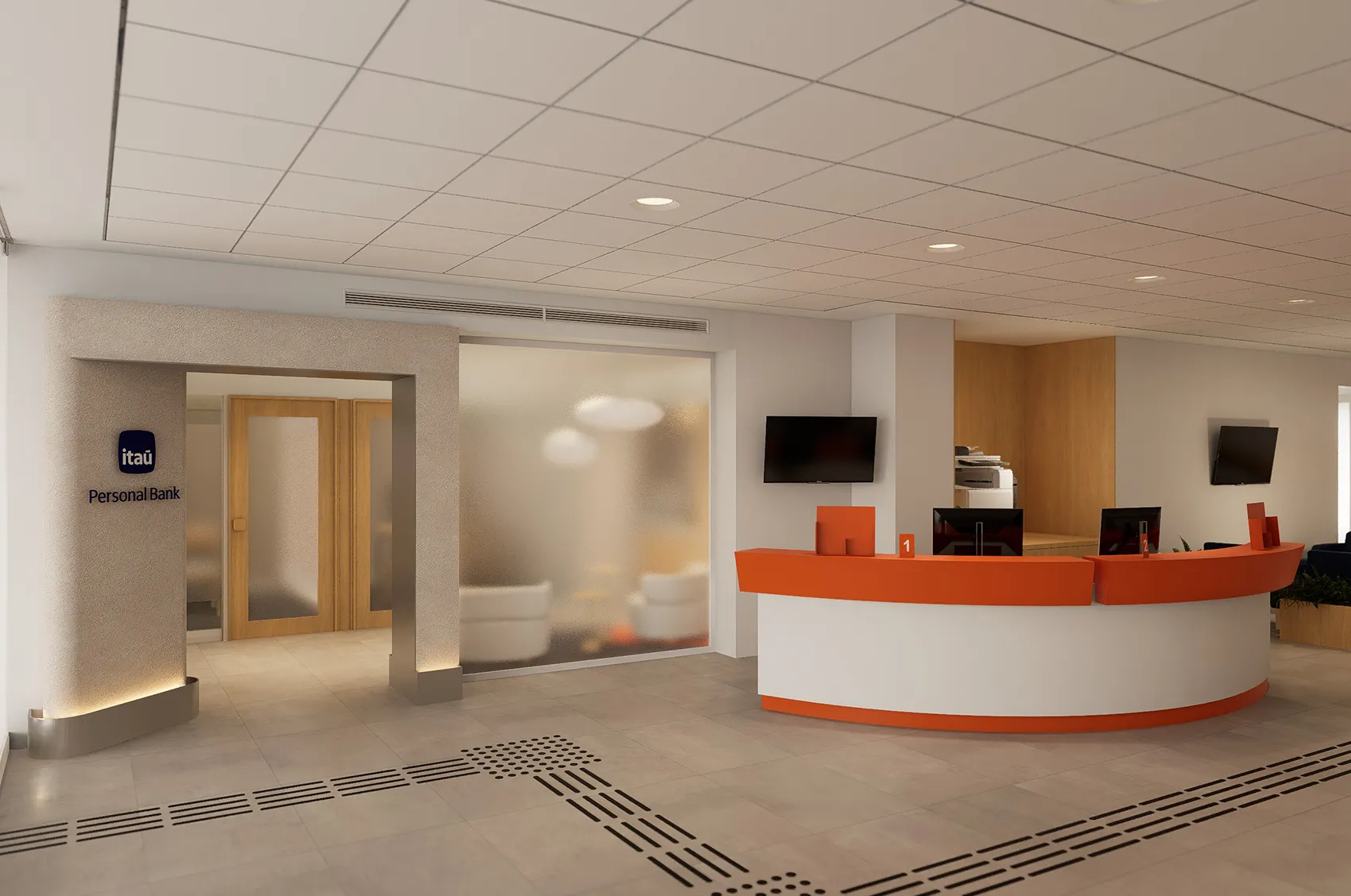 Trabajamos en la remodelación de diversas oficinas del Banco Itaú en diferentes ciudades, diseñando espacios exclusivos para clientes VIP.