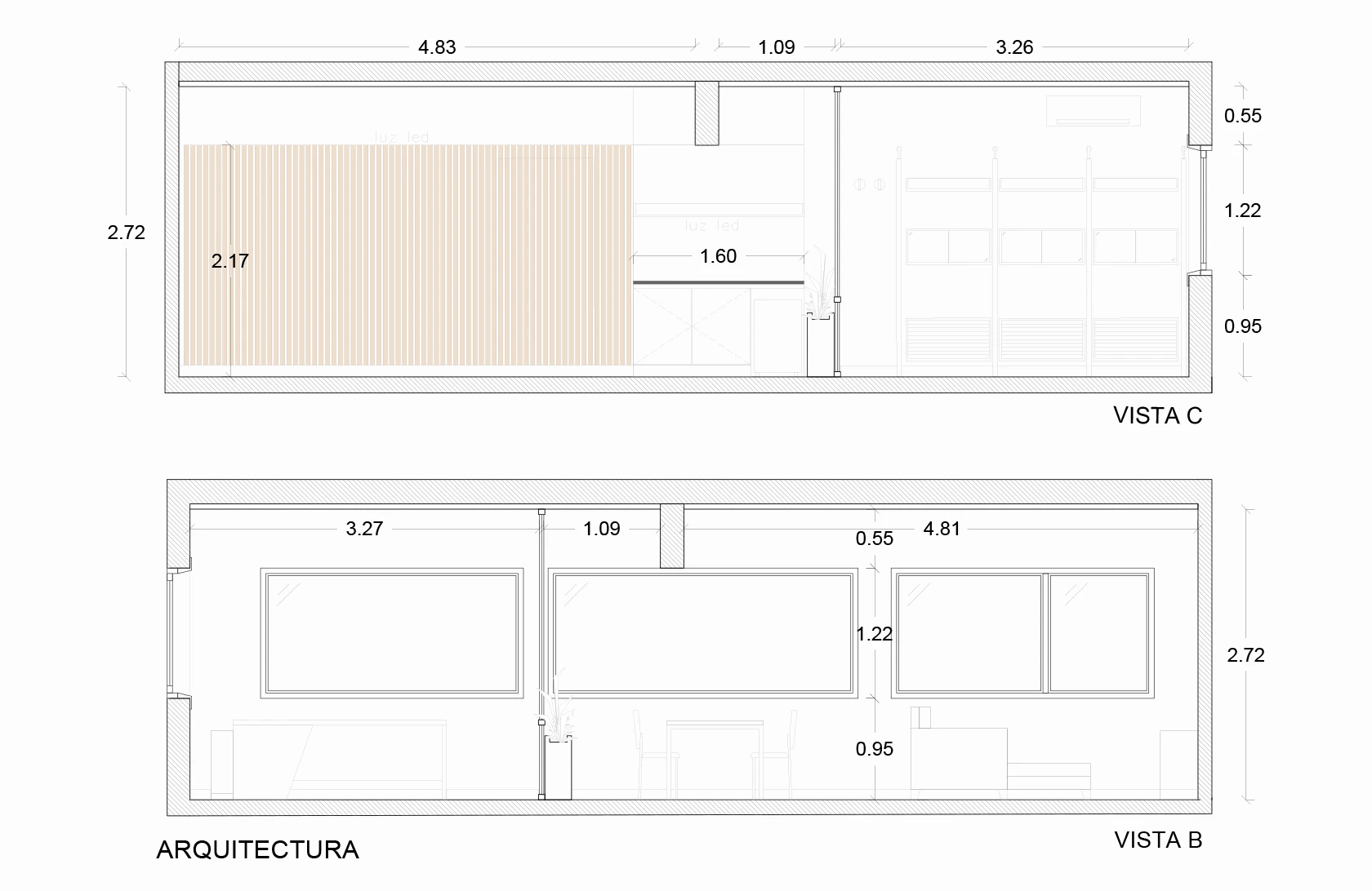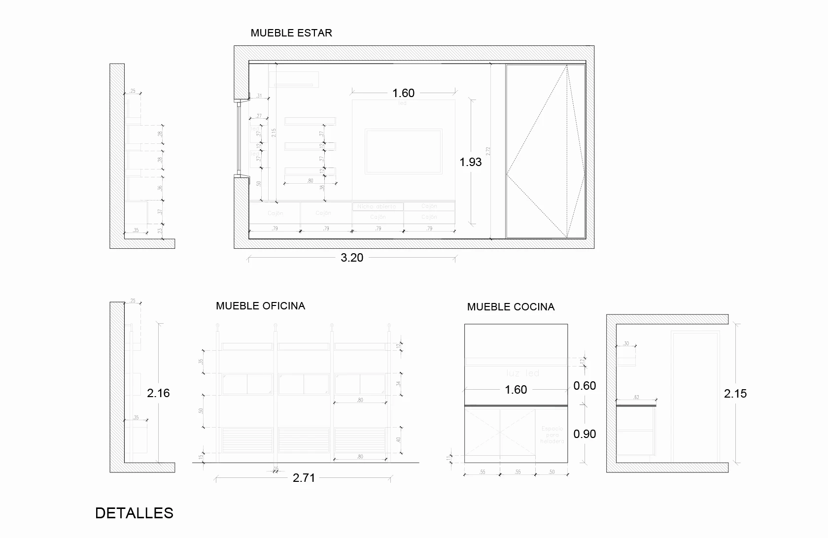 • Bajo escalera: Espacio cerrado con puertas para ocultar un pequeño depósito.