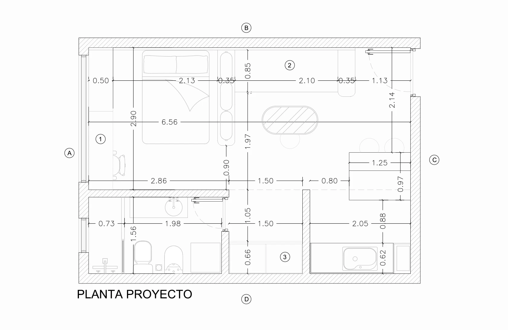 Se abordó el diseño con el concepto de generar dos sectores conectados a través de un mueble divisor multifunción: