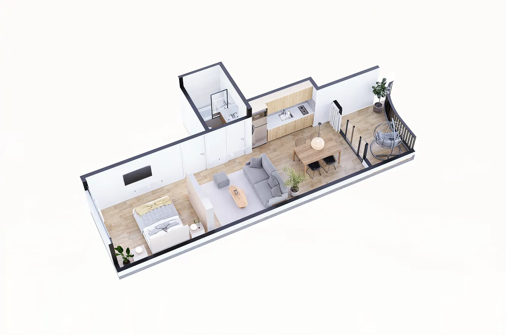 El diseño busca crear un espacio acogedor, funcional y estéticamente atractivo, adaptado a las necesidades y gustos del usuario. Se han seleccionado materiales, colores y mobiliario que favorezcan la armonía y el confort. La paleta cromática incluye tonos neutros con acentos en colores cálidos, lo que aporta una sensación de amplitud y tranquilidad.