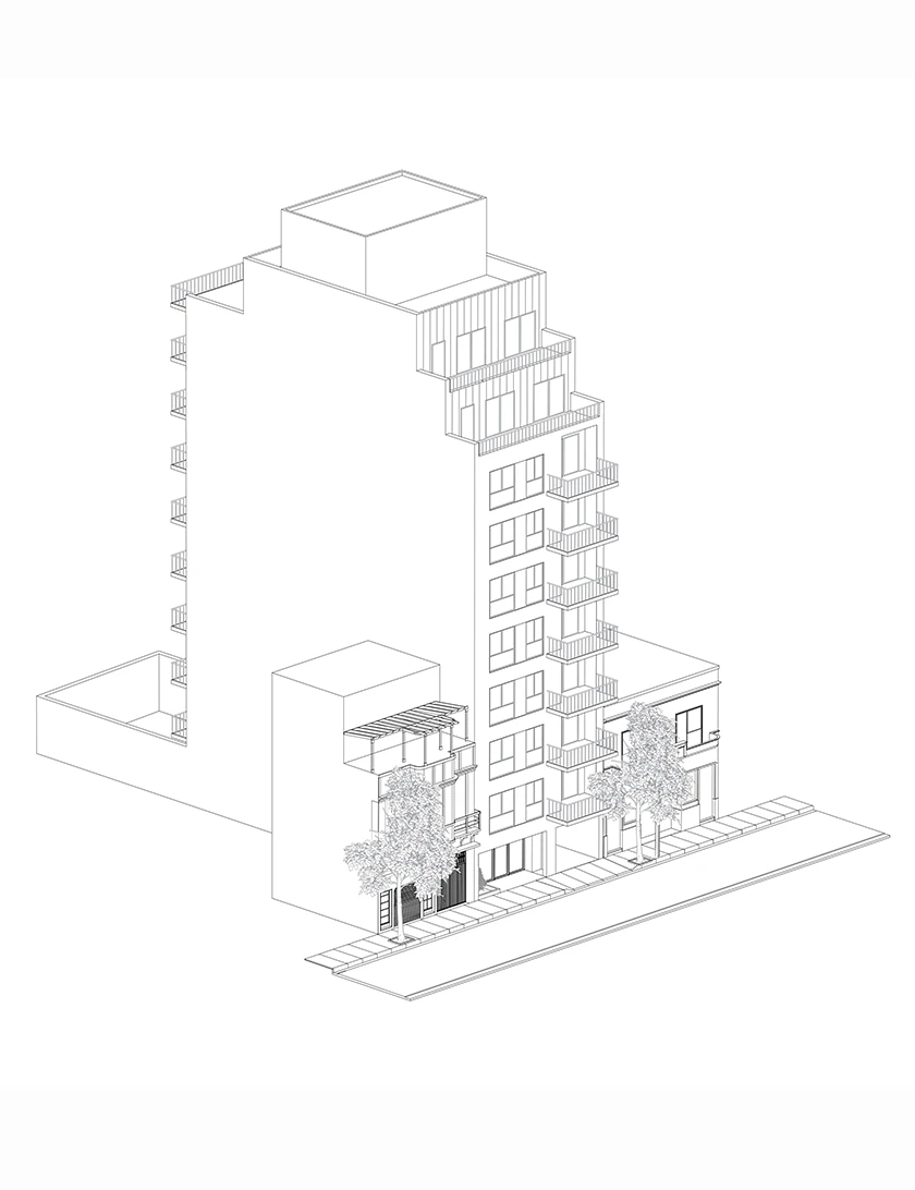 El cliente nos confió el diseño arquitectónico, la documentación y la gestión del proceso de aprobación municipal para este proyecto de vivienda multifamiliar.