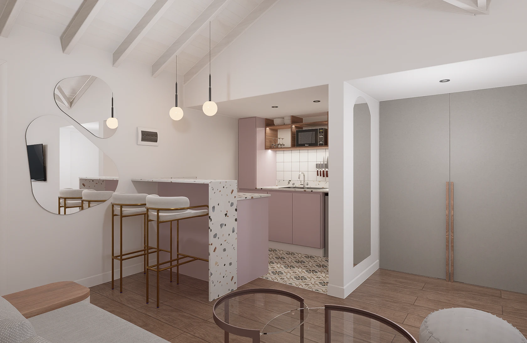 Ruru, directora de arte, adquirió un Monoambiente de 28 m2 vacío el cual necesitaba diseñarlo y amueblarlo completamente para poder vivir ella , así también como para alquilarlo, por lo que se contactó con nosotros para hacer la asesoría de diseño.